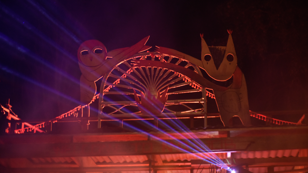 Elle fait principalement des installations, construit des cabanes, coupe du bois, décore des festivals, déconstruit le patriarcat et joue avec ses enfants dans la foret. Elle vit et travaille à Lausanne.